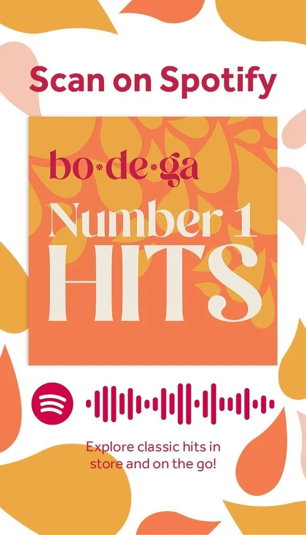 Spotify Card with scannable QR code that leads to ‘Bo De Ga’s Number 1 Hits’ playlist!